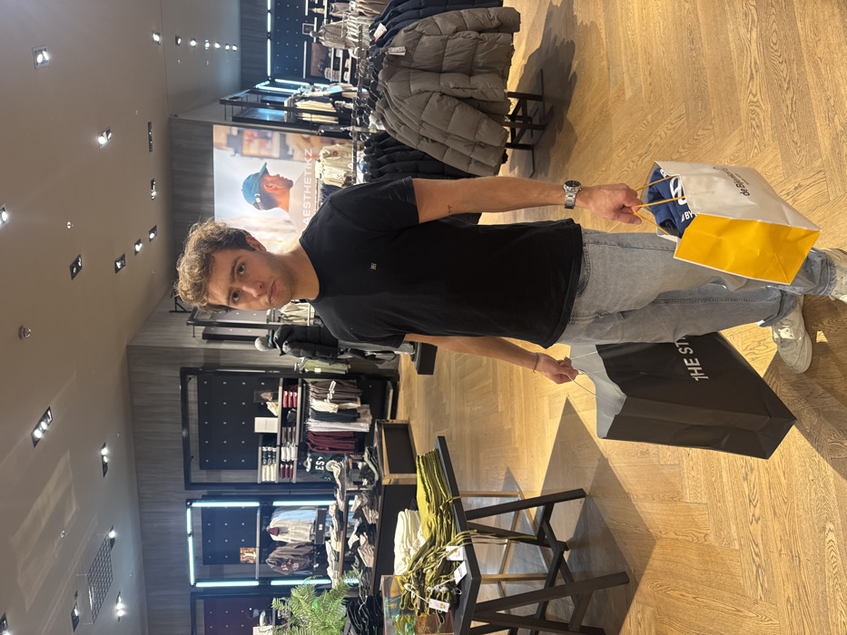 young adult male inside a retail clothing section of De Bijenkorf department store, located at Piazza 1, 5611 AE Eindhoven, Netherlands