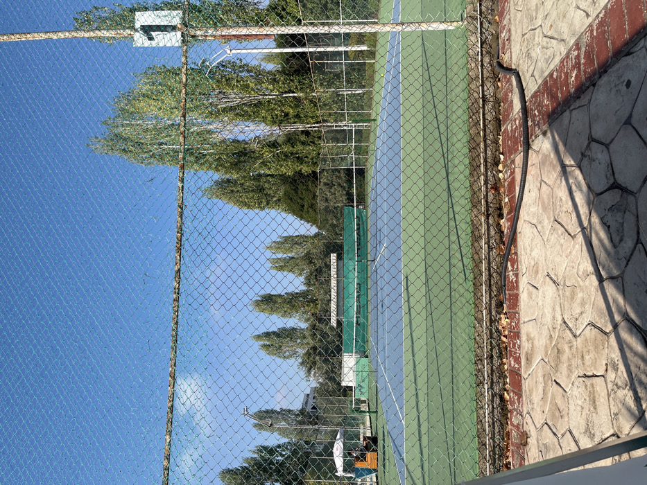 - "The image depicts outdoor tennis court number 1, viewed from behind a green, rust-stained chain-link fence" by FM-zEPNy1, licensed under CC BY 4.0