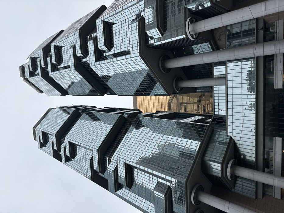 - "The image displays a low-angle, upward-looking view of two identical skyscrapers of the Lippo Centre, located in Admiralty, Hong Kong, China" by FM-tawOm1, licensed under CC BY 4.0