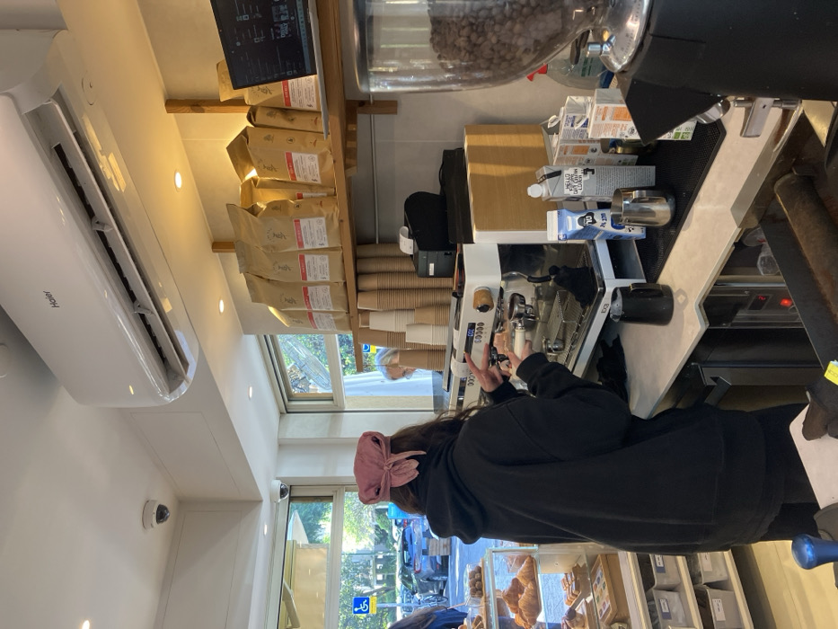 - "interior of a modern coffee shop, likely located in Tel Aviv, Israel, given the visible Hebrew text on a milk carton" by FM-K790o1, licensed under CC BY 4.0