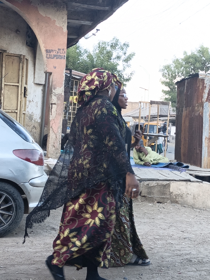 - "An outdoor scene in Gwagwarwa, Nigeria, depicts two women walking leftwards on a dirt ground in the foreground" by FM-Bh3W72, licensed under CC BY 4.0