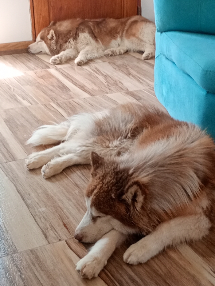 - "Two Siberian Huskies are resting on a tiled floor" by FM-skUe82, licensed under CC BY 4.0