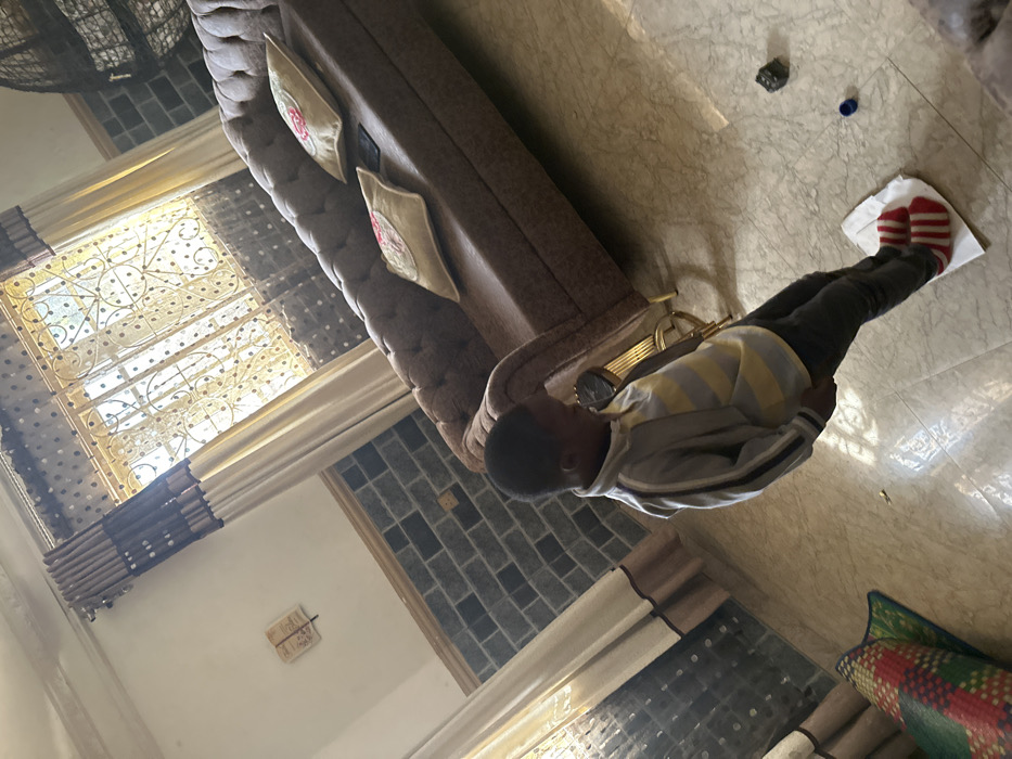 The image depicts an indoor residential setting, identified as a living room in Jos, Nigeria