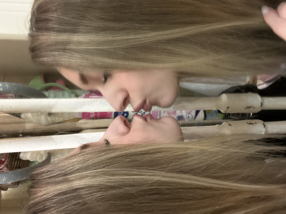 - "An indoor scene in Reutov, Russia, captures a female individual with long, light blonde hair kissing her reflection in a mirror" by FM-m5rDi1, licensed under CC BY 4.0