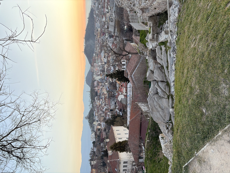 - "This image captures a panoramic, elevated view of Plovdiv, Bulgaria, at either sunrise or sunset, evidenced by the gradient sky transitioning from orange and yellow at the horizon to pale blue overhead" by FM-vetpu1, licensed under CC BY 4.0