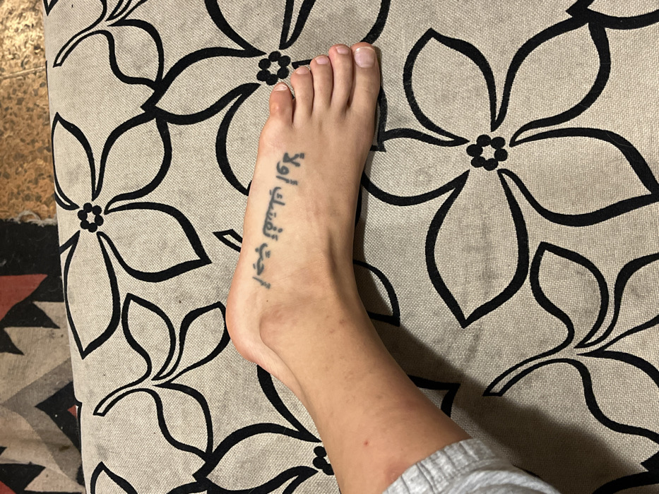 - "A foot with a tattoo is visible against a patterned backdrop" by FM-5M2eq1, licensed under CC BY 4.0