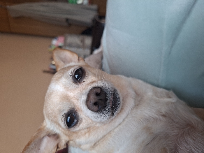 - "The image displays a light tan and white Chihuahua dog, positioned in the foreground and facing directly into the camera" by FM-YQydj1, licensed under CC BY 4.0