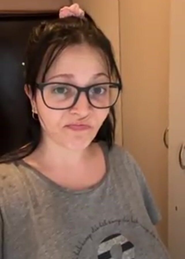 The video begins with a close-up of a woman wearing glasses and a grey t-shirt with a pink scrunchie in her hair