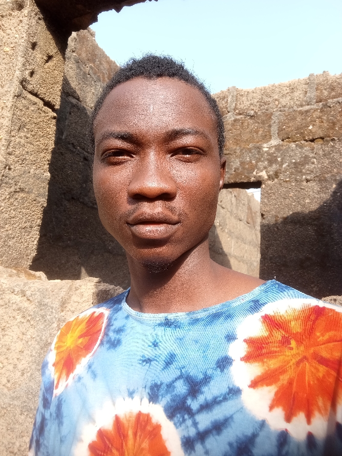 A young adult male, appearing to be of African descent, is positioned in an outdoor setting in the city of Kakau, Nigeria