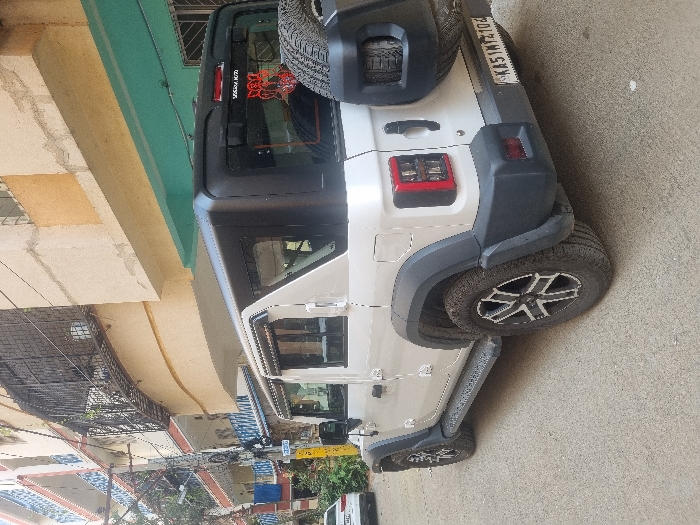 - "A white four-door Mahindra Thar SUV with a black hardtop is parked on a paved street in Puttaparthi, India" by FM-Qmj6l1, licensed under CC BY 4.0