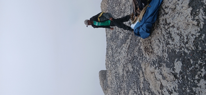 - "The image displays an individual on a rocky, high-altitude terrain at Gilman's Point, Tanzania, under a uniformly grey, overcast or foggy sky" by FM-tjCYg2, licensed under CC BY 4.0