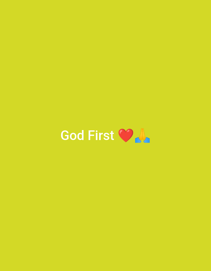 The image displays a digital graphic on a solid yellow-green background. Centered horizontally, white text reads "God First." To the immediate right of the text, a red heart emoji is positioned. Further to the right of the heart emoji, a praying hands emoji is present, depicting hands pressed together with blue cuff details. No discernible physical environment, people, actions, or interactions are depicted. The image does not contain any visual information pertaining to a specific location in Abuja, Nigeria, or any other geographical area.