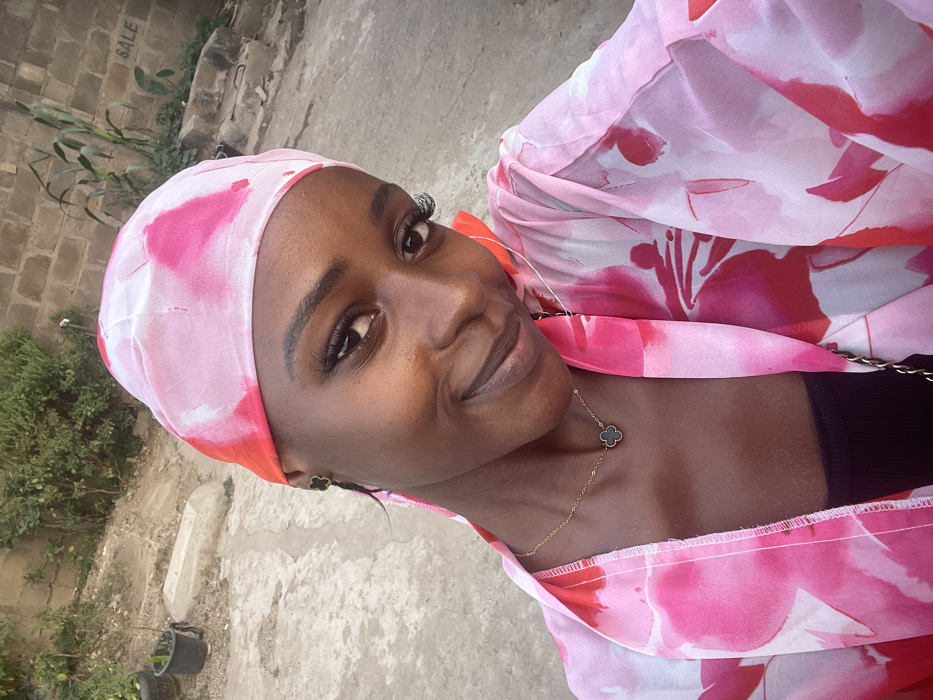 - "A woman poses outdoors wearing a pink and red floral headscarf and matching top" by FM-qoGlk2, licensed under CC BY 4.0
