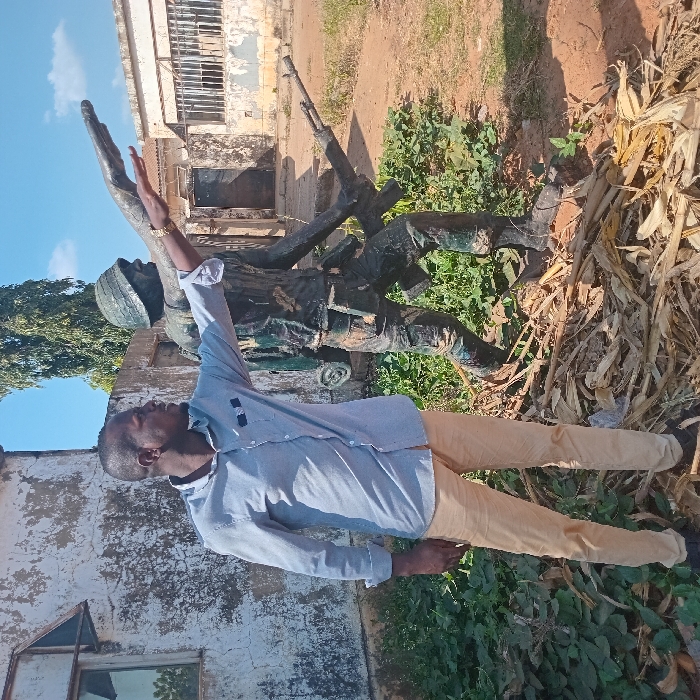 - "The scene, set in an outdoor area within the city of Television, Nigeria, features an adult male standing beside a soldier statue" by FM-5caGl1, licensed under CC BY 4.0