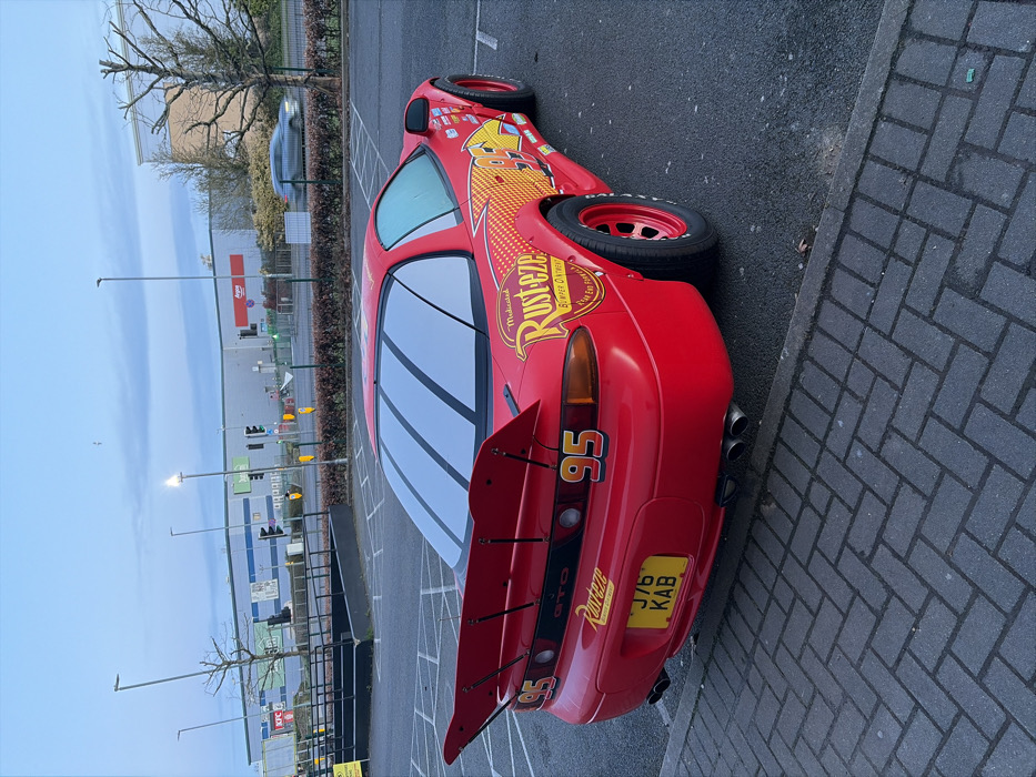 - "The image presents a customized red Mitsubishi GTO sports car, modified to resemble "Lightning McQueen" from the "Cars" franchise, parked in a retail park in Harlow, United Kingdom" by FM-zU7NI2, licensed under CC BY 4.0