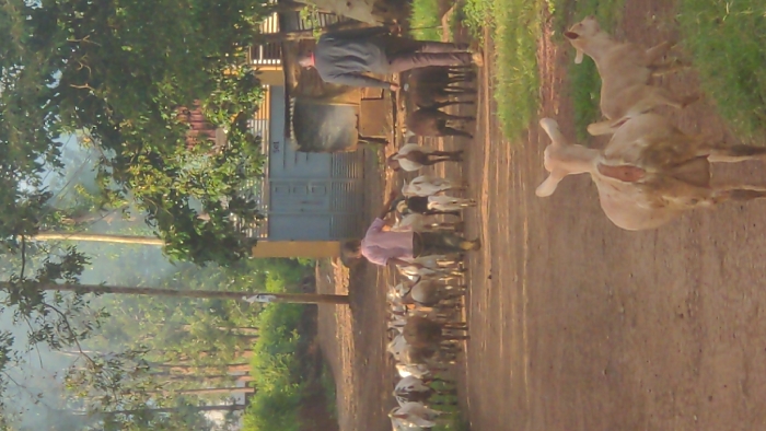 - "The scene, set in Longuo 'A', Tanzania, depicts two individuals herding a mixed-breed goat herd, estimated at 15-20 animals, along a reddish-brown dirt road under natural light" by FM-QrecA3, licensed under CC BY 4.0