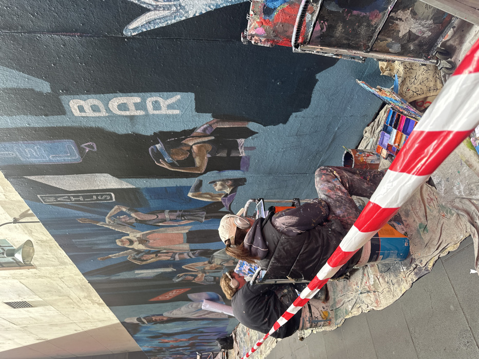 - "Two artists are actively painting a large mural on a wall in a narrow laneway in Melbourne, Australia" by FM-P0ePn2, licensed under CC BY 4.0