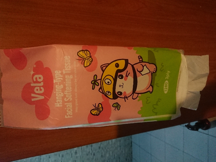 - "A "Vela" brand "Hanging-Type Facial Softening Tissue" package is depicted hanging vertically in Valenton, France" by FM-qDWqL2, licensed under CC BY 4.0