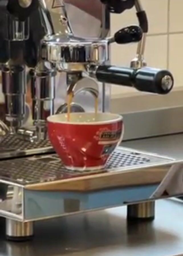 An espresso machine is shown in the video