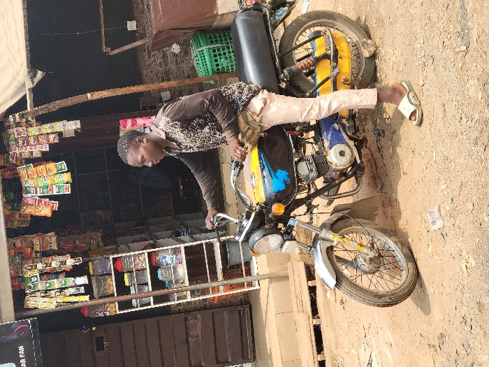 - "An outdoor scene in Awka, Nigeria, depicts a young male astride a motorcycle positioned on an unpaved, reddish-brown dirt surface" by FM-f7qLn2, licensed under CC BY 4.0