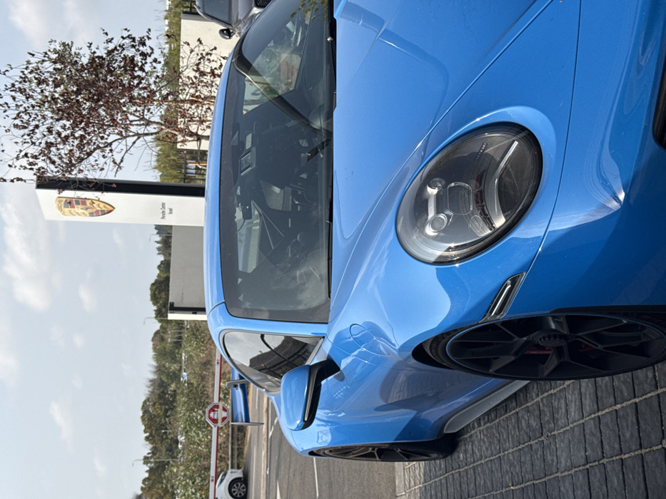 - "A bright blue Porsche 911, identified as a 992 generation model with a visible roll cage in the interior, is parked on a dark gray paver surface, angled towards the right side of the frame" by FM-m9oJn2, licensed under CC BY 4.0