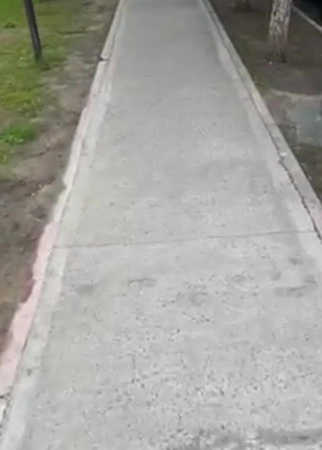 first-person view of someone walking along a concrete sidewalk
