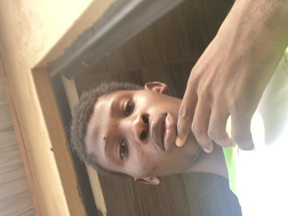 The image presents a close-up, low-angle selfie of a young adult male of African descent, reportedly located in Agege, Nigeria