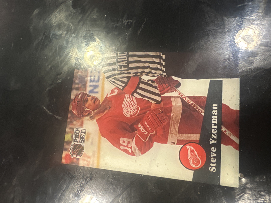 A 1991 Pro Set Steve Yzerman hockey card is displayed