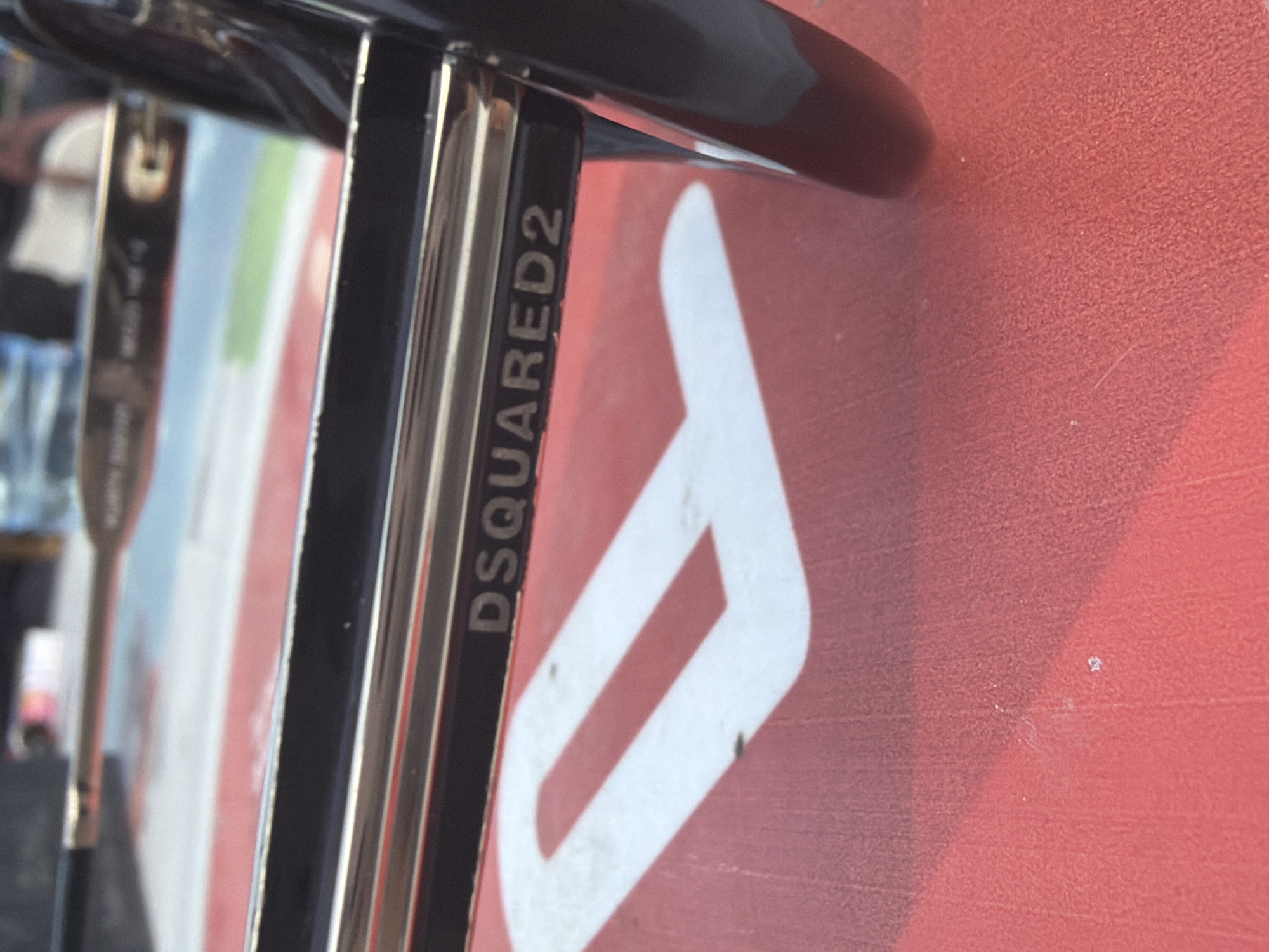 - "The image displays a close-up, shallow depth-of-field shot centered on the temple arm of a pair of black DSQUARED2 sunglasses" by FM-1IBG42, licensed under CC BY 4.0