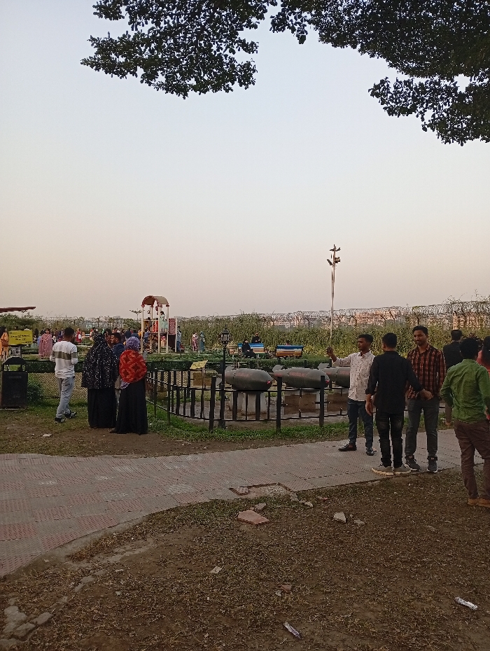 This image depicts a public outdoor area at the Bangladesh Air Force Museum in Dhaka, Bangladesh, under an overcast or hazy sky