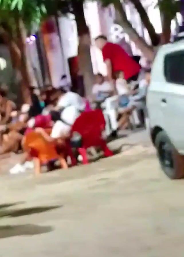 The video depicts an outdoor gathering in what appears to be a public space or roadside area at night