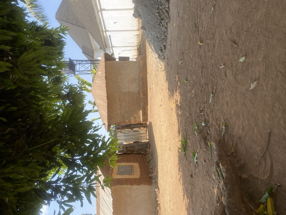 This image, located in Nakuse, Nigeria, displays a ground-level view of an outdoor residential area under clear daylight