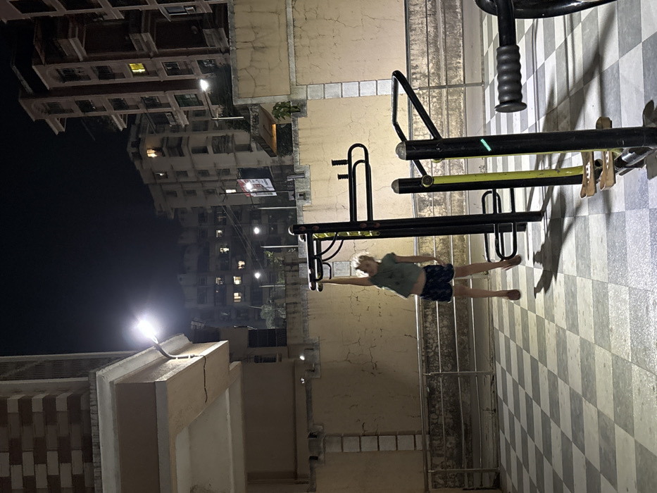 This image depicts an outdoor exercise area at night in Ambernath, India