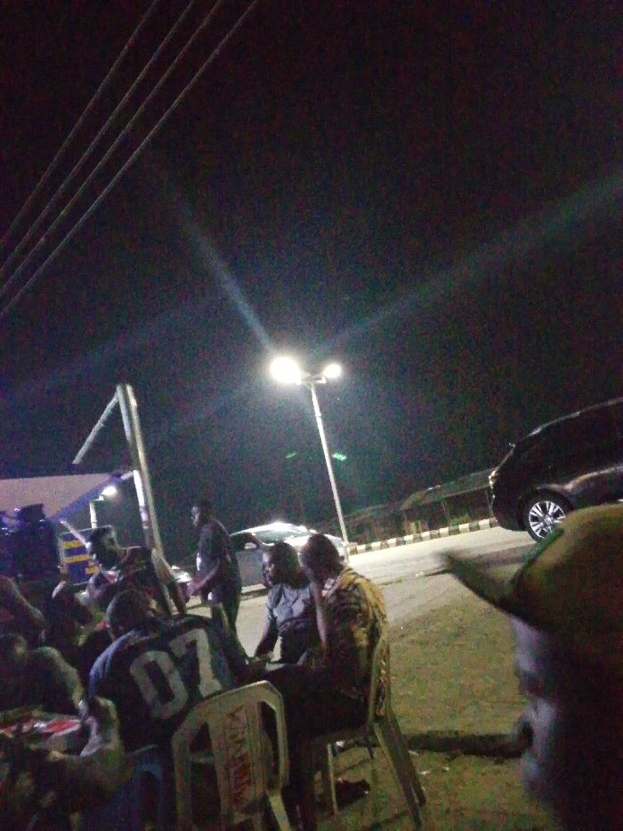 The image depicts a nighttime outdoor scene in Zango-ndaji, Nigeria, under artificial illumination