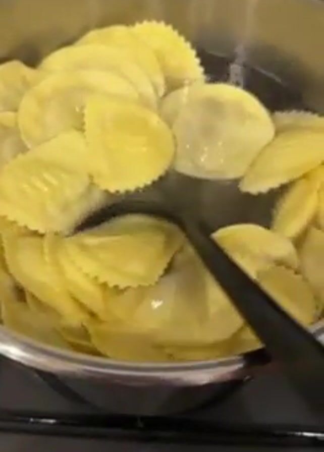 - "A stainless steel pot sits on a black stovetop, filled with yellow ravioli in boiling water" by FM-4OCh93, licensed under CC BY 4.0