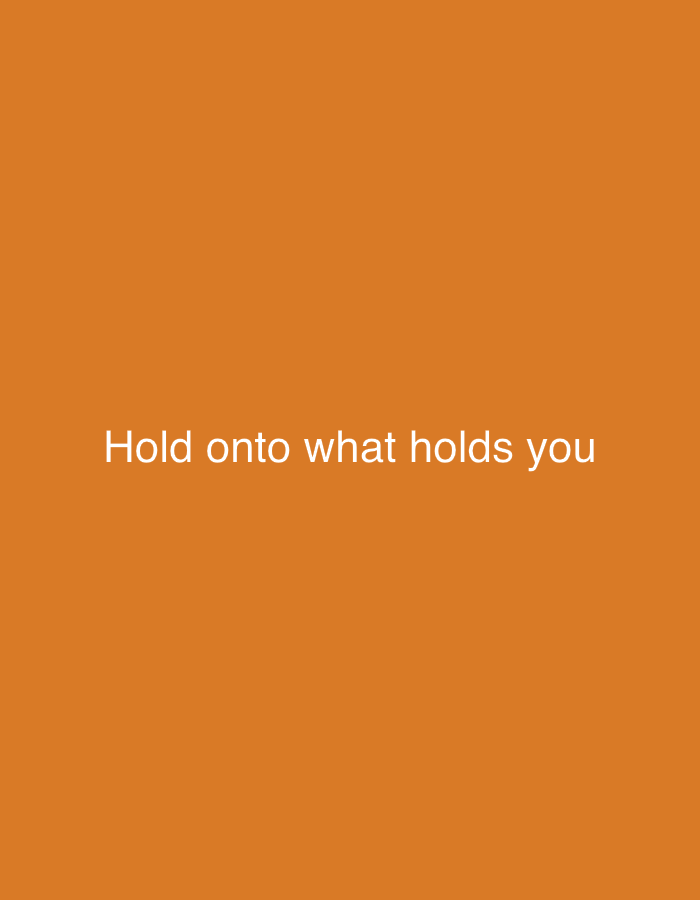 The image displays a digital graphic composed of white text centered against a solid orange background. The text reads: "Hold onto what holds you". No discernible physical environment, individuals, objects beyond the text, actions, or interactions are present within the frame.