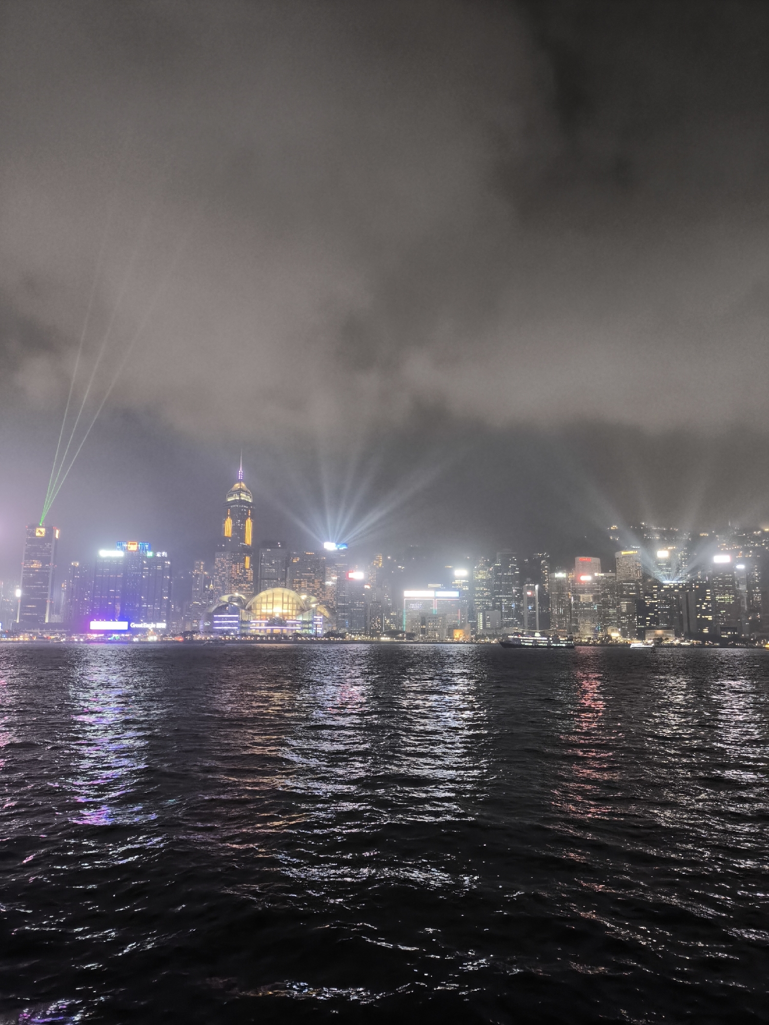 - "An elevated, long-distance view at night depicts the illuminated skyline of Hong Kong Island as seen from Victoria Harbour" by FM-ETbE83, licensed under CC BY 4.0