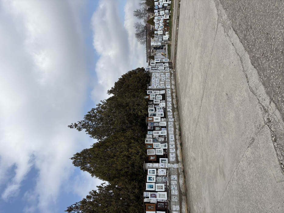 This image depicts an outdoor scene at a cemetery or memorial area in Kavarna, Bulgaria