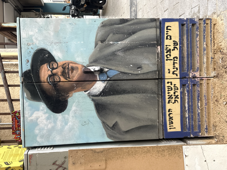 - "An outdoor utility cabinet, vertically bisected, displays a painted portrait of Chaim Weizmann, identified by black Hebrew text on a yellow band below the image as "חיים ויצמן - נשיא ראשון של מדינת ישראל" (Chaim Weizmann - First President of the State of Israel)" by FM-jqiIm2, licensed under CC BY 4.0