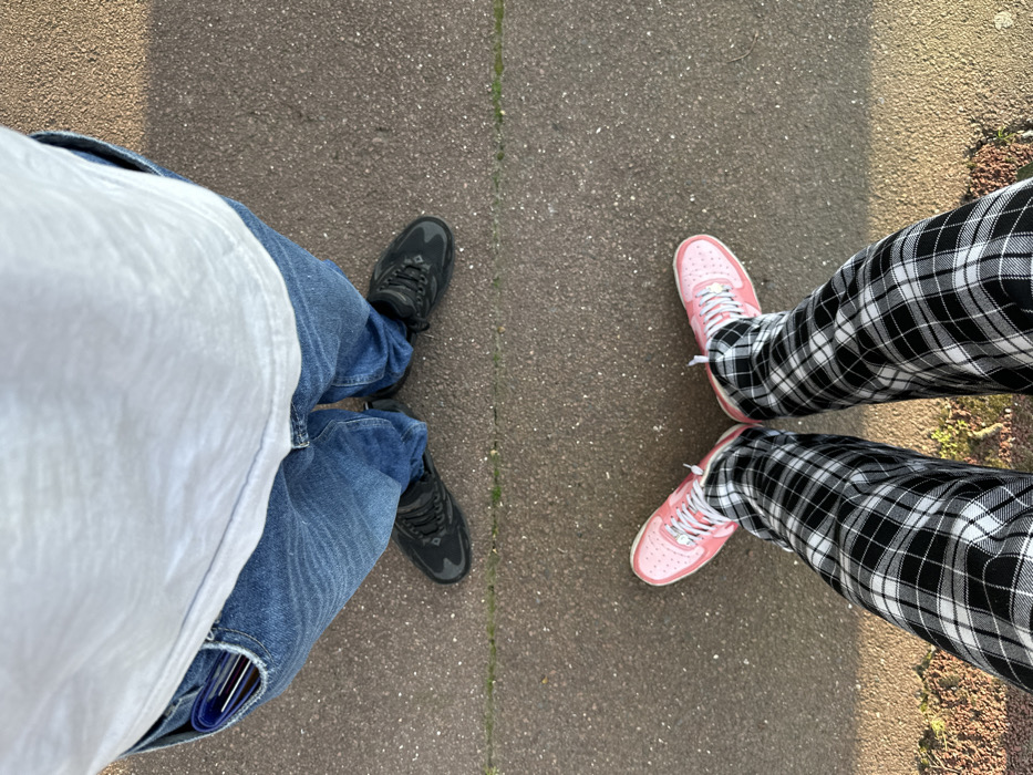 - "An overhead photograph captures the lower legs and feet of two individuals standing on a paved surface in Rueil-Malmaison, France" by FM-wLQPz2, licensed under CC BY 4.0