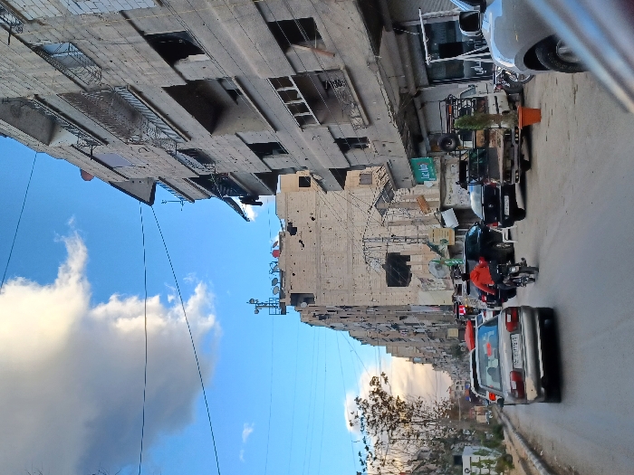 - "The image displays an urban street scene in Zamalka, Syria, under a clear blue sky featuring a prominent large white cumulus cloud in the upper left" by FM-hmmxi2, licensed under CC BY 4.0