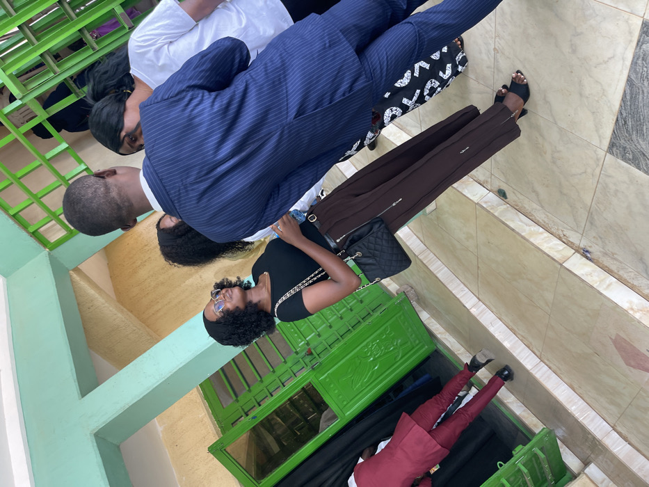 The image depicts an interior or semi-exterior walkway within a building in Kufena, Nigeria