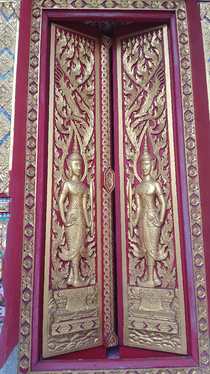 - "The image displays a pair of ornate, partially ajar temple doors within a Buddhist temple in Bangkok, Thailand" by FM-BdCXB3, licensed under CC BY 4.0