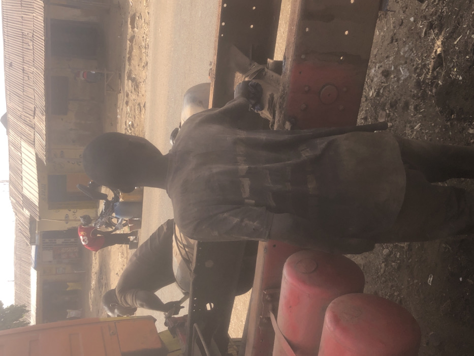 The image depicts an outdoor scene in a roadside mechanical repair area within the city of Tukur Tukur, Nigeria