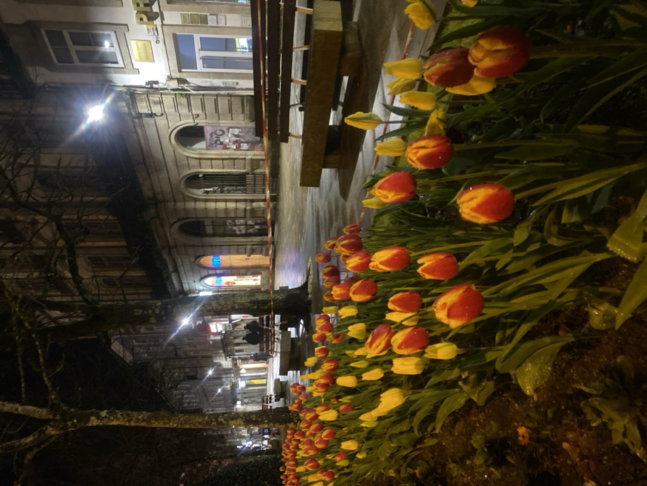 - "A nighttime urban scene features a row of red and yellow tulips in the foreground" by FM-0jlyr2, licensed under CC BY 4.0