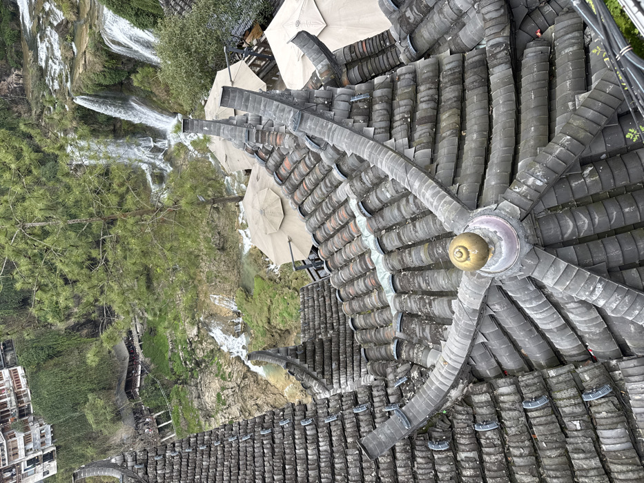 - "An elevated view captures the ancient town of Furong, China, overlooking its prominent waterfall" by FM-7eaFY2, licensed under CC BY 4.0
