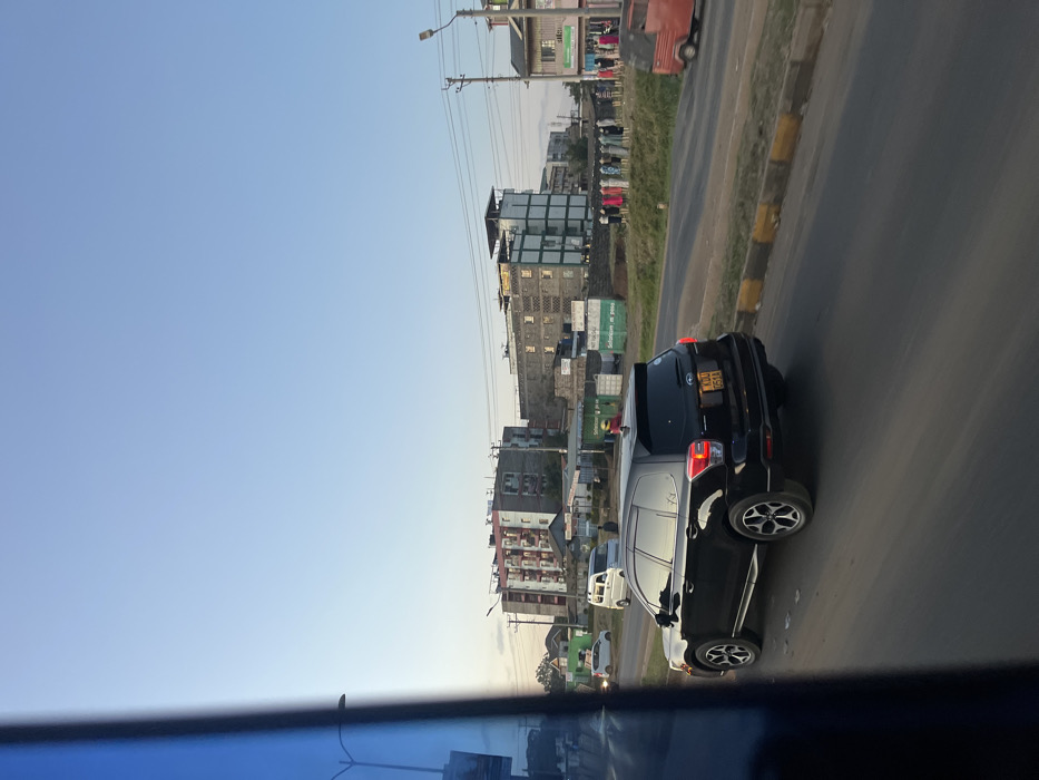 An outdoor, eye-level street scene in Biashara ward, Kenya, captured under a clear, light blue sky transitioning towards a lighter hue at the horizon