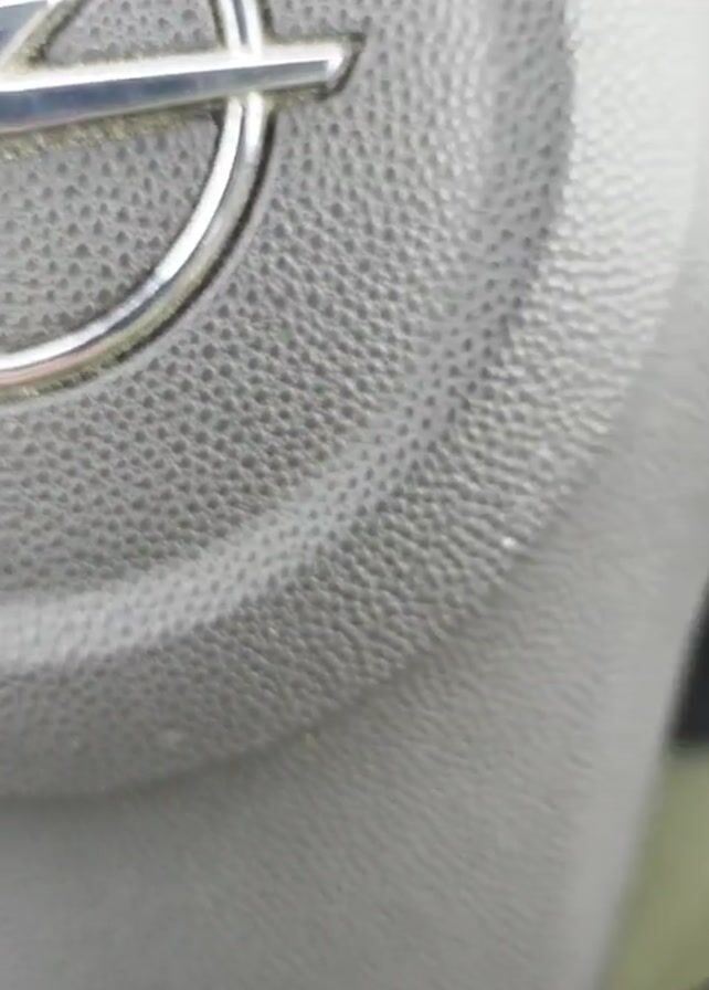A close-up video reveals an Opel car's steering wheel with the brand's logo prominently displayed