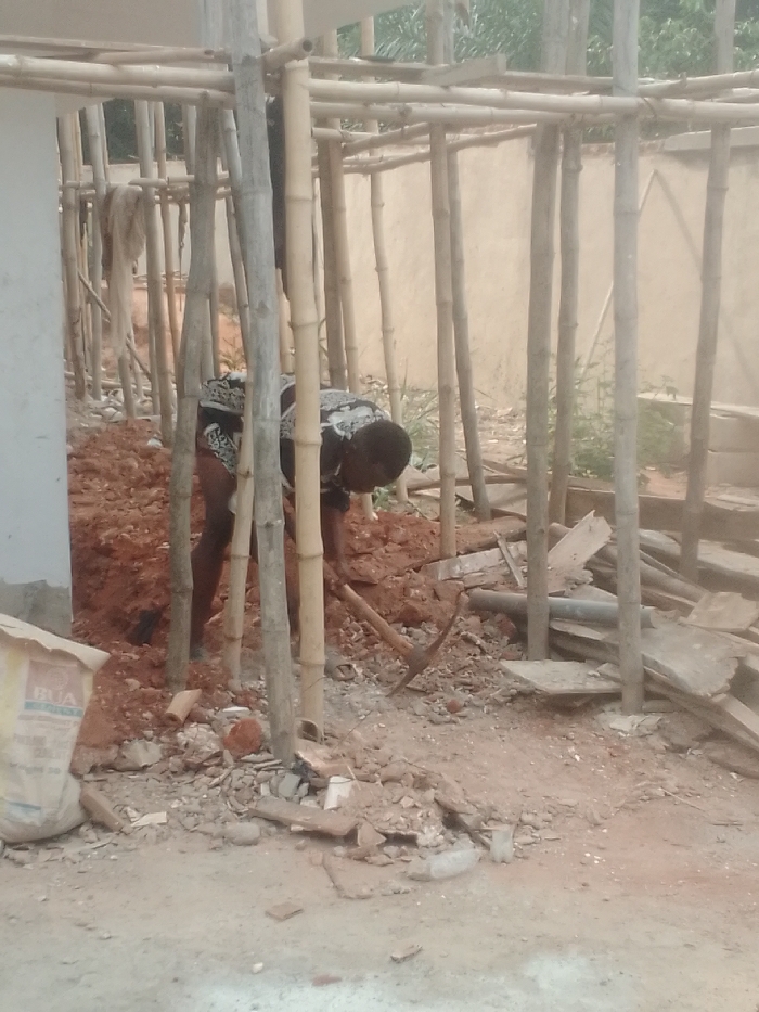 This image captures an outdoor construction scene in Alor, Nigeria