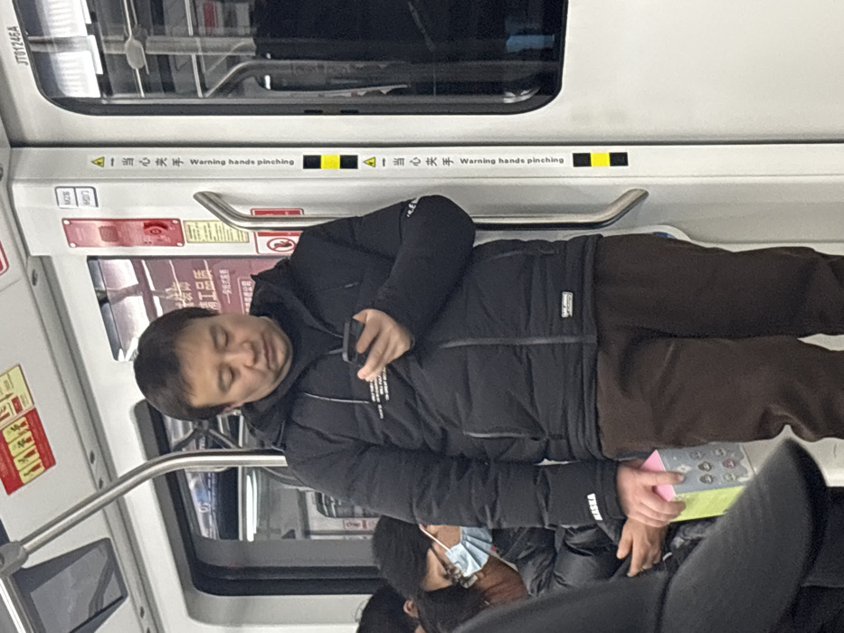 - "An East Asian male, appearing middle-aged, stands in a brightly lit subway car in Tiaodeng, China" by FM-2qO1X2, licensed under CC BY 4.0
